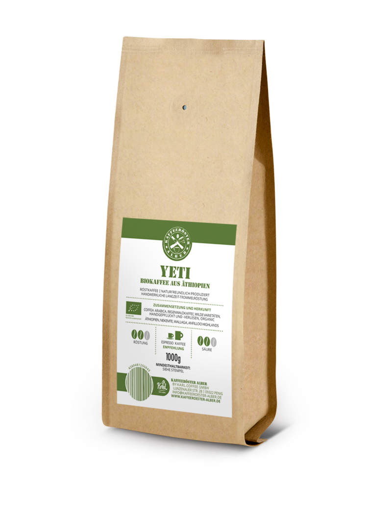 Die Bauernfamilien der YETI ACRA FOREST Produzentengemeinschaft pflanzen und ernten den Kaffee im Regenwald. Dass die Bewirtschaftung im Einklang mit der Natur und mit Respekt vor der Natur und den Tieren geschieht, zeigt u.a. die „bird friendly“- Zertifizierung im Jahr 2007 als erstes Kaffeeunternehmen Afrikas. Honoriert wird damit neben dem ökologischen Anbau besonders der Erhalt naturnaher Waldstrukturen. Wir freuen uns sehr, diesen BIO- Kaffee rösten und anbieten zu können. Eine Medium- Röstung für Kaffee- wie auch Espressozubereitungen. Schmecken und genießen Sie die Intensität eines wilden, ursprünglichen Kaffees. Die aktuelle Röstung stammt aus den westäthiopischen Regionen Nekempti, Limmu bzw. Kaffa.